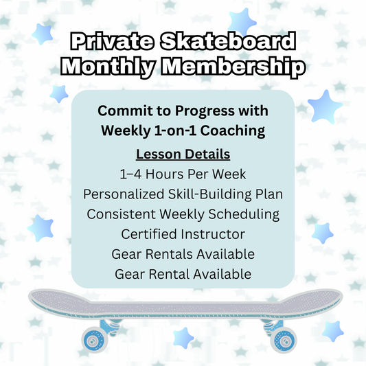 One-on-one coaching sessions tailored to your goals. Perfect for beginners or advanced skaters looking to refine their skills.